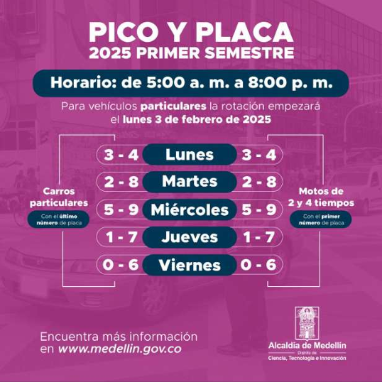 Pico y placa Área metropolitana de Medellin - Segundo semestre 2025